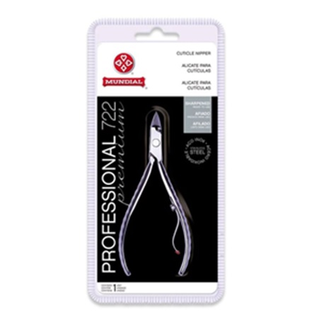 Alicate para cutículas Mundial Professional 722 em embalagem preta