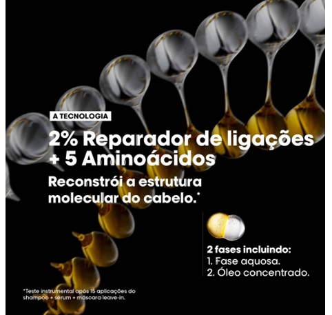 O Óleo Bifásico Absolut Repair Molecular da L'Oréal Serie Expert é especialmente formulado para tratar cabelos danificados ou quebradiços, proporcionando uma reparação profunda e duradoura.
